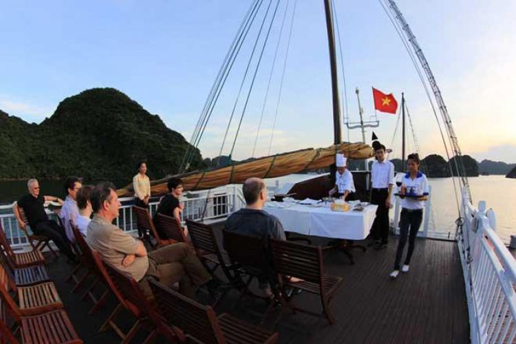 07:30 – 08:30 Explore Cua Van Floating Village by local bamboo boat or kayaking. While onboard you can take advantage at leisure of our Spa, Beauty & Massage services.