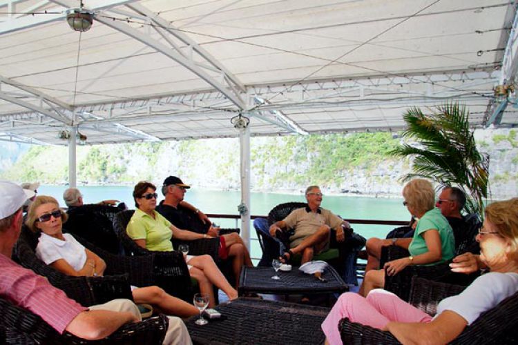 12:00 - 12:15 Arrive at Tuan Chau Marina Harbor. Register/Check-in at Emeraude Café (Halong Bay)