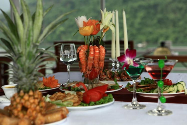 Attend the Cooking class on sundeck – How to make Vietnamese spring rolls – traditional Vietnamese food. Then enjoy Happy Hour (Buy one drink-get one free). It is time for chit chat and relaxing. Watch the magnificent sunset over Halong Bay.