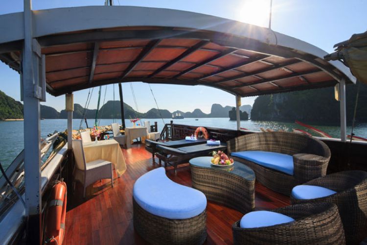 10:30 Enjoy Set Menu for lunch in the dining room. We will settle bills after lunch. Relaxing on the sundeck or in the dining room, enjoying the rest of Halong bay before getting back to harbor.