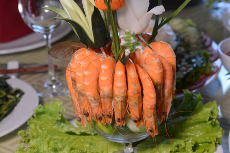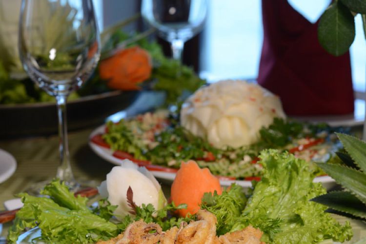 19:00 Dinner is a sumptuous buffet featuring an array of salads, seafood, meat dishes, seasonal fresh fruits and desserts.